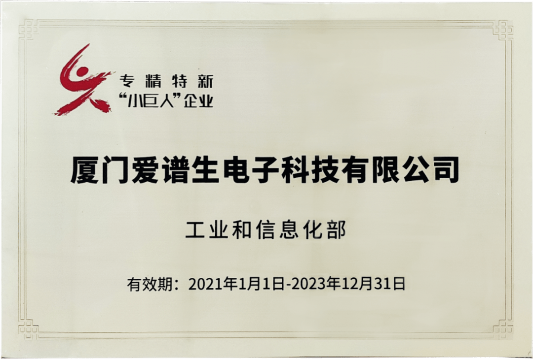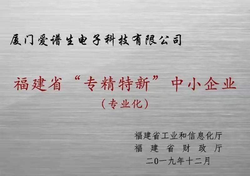 爱谱生是国家级高新技术企业、国家第二批专精特新“小巨人”企业、 福建省“专精特新”中小企业(专业化),拥有雄厚的技术实力。