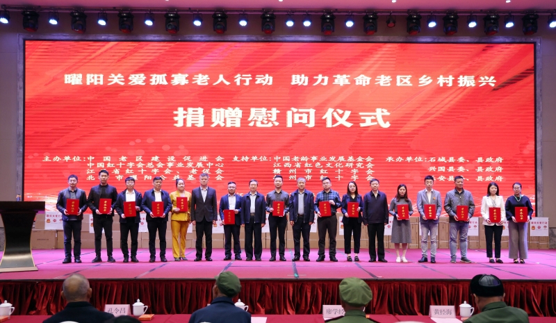 4月12-13日,“曜阳关爱孤寡老人行动 助力革命老区乡村振兴”公益活动在江西省赣州市石城县举行。本次活动由中国老区建设促进会,中国红十字会总会事业发展中心,江西省老区建设促进会、红十字会,北京市曜阳公益基金会联合主办。江西省委原书记舒慧国,国家乡村振兴局规划财务司副司长孔令影,中国老区建设促进会副会长姜平,中国老区建设促进会振兴发展协调部部长卢少泽,中国红十字会总会事业发展中心主任、北京市曜阳基金发起人江丹,江西省老区建...