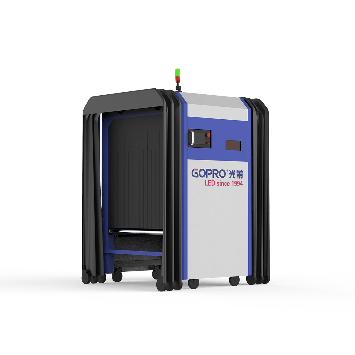 3.安全环保系统:UVC挡光帘设置,消毒空间封闭,保证环境安全,对包装内容物无污染,保证物品安全。